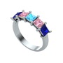 Akuamarin, pembe kuvars ve lab safir 14 ayar beyaz altın yüzük
