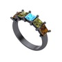 Akuamarin, peridot ve dumanlı kuvars 925 ayar siyah rodyum kaplama gümüş yüzük