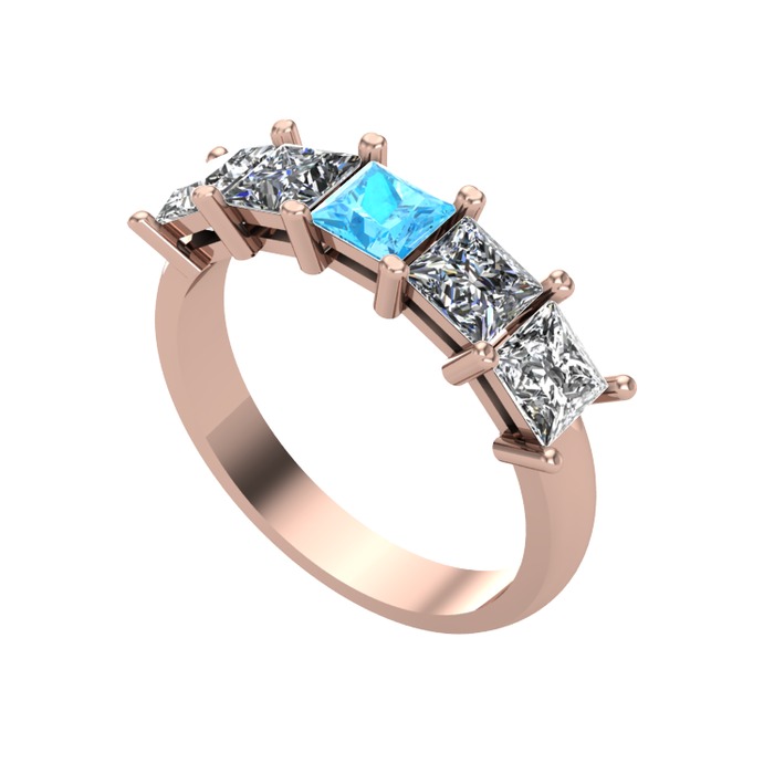 Akuamarin, pırlanta ve beyaz zirkon 925 ayar rose altın kaplama gümüş yüzük (0.78 karat)