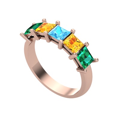 Akuamarin, sitrin ve yeşil kuvars 14 ayar rose altın yüzük