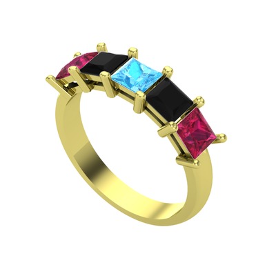 Akuamarin, siyah zirkon ve rodolit garnet 925 ayar altın kaplama gümüş yüzük
