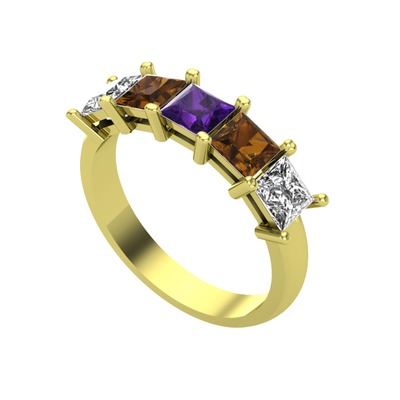 Ametist, dumanlı kuvars ve swarovski 925 ayar altın kaplama gümüş yüzük