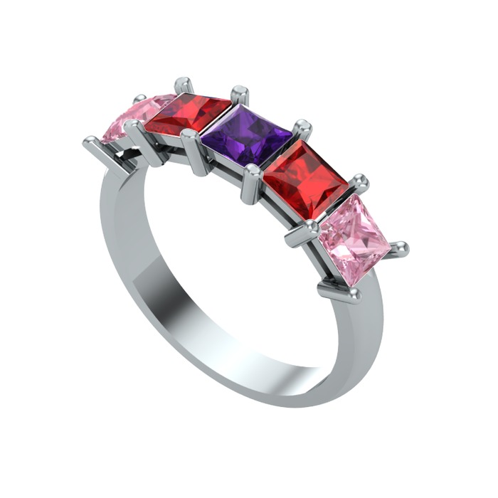 Ametist, garnet ve pembe kuvars 925 ayar gümüş yüzük