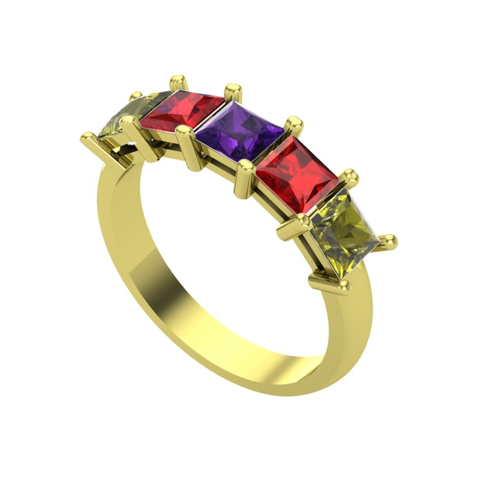 Ametist, garnet ve peridot 8 ayar altın yüzük