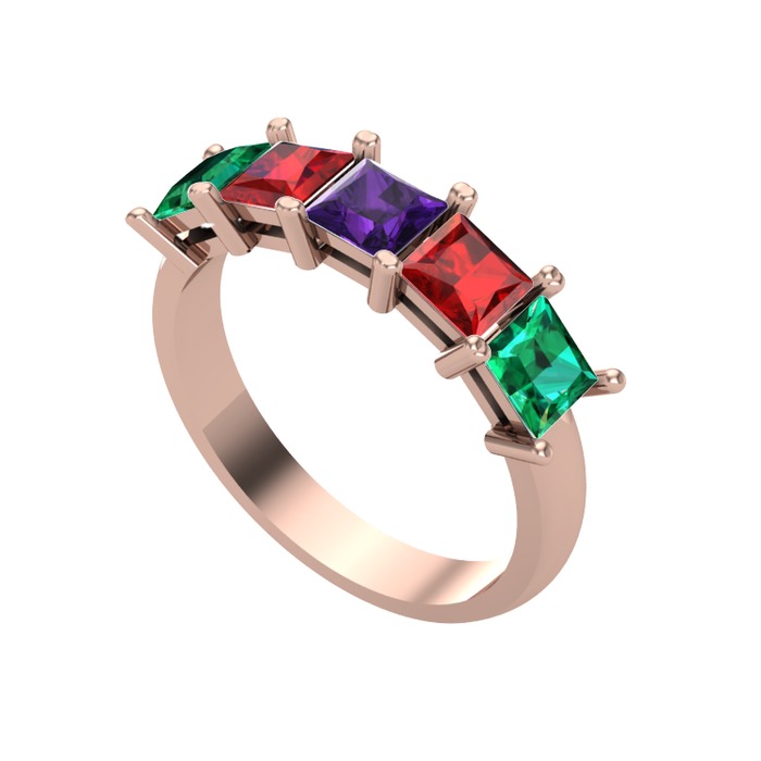 Ametist, garnet ve yeşil kuvars 18 ayar rose altın yüzük