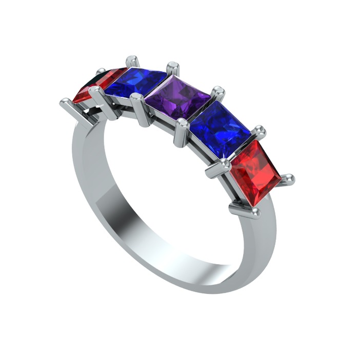 Ametist, lab safir ve garnet 925 ayar gümüş yüzük