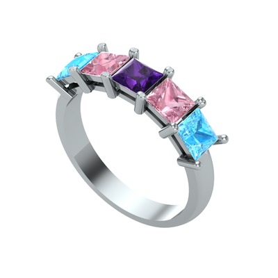 Ametist, pembe kuvars ve akuamarin 18 ayar beyaz altın yüzük