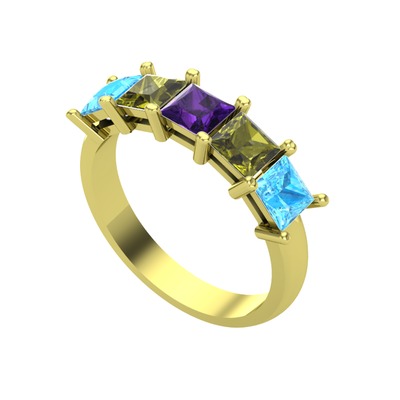 Ametist, peridot ve akuamarin 18 ayar altın yüzük
