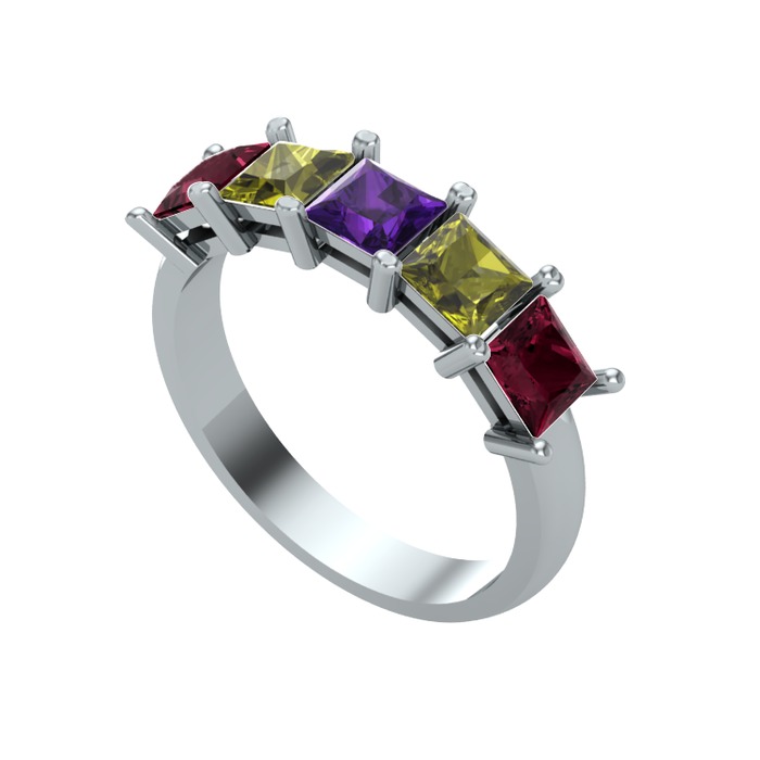 Ametist, peridot ve kök yakut 8 ayar beyaz altın yüzük