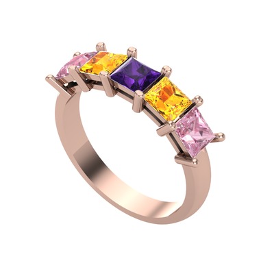 Ametist, sitrin ve pembe kuvars 8 ayar rose altın yüzük