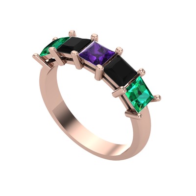 Ametist, siyah zirkon ve yeşil kuvars 18 ayar rose altın yüzük