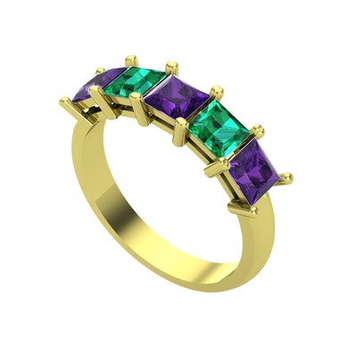 Ametist ve yeşil kuvars 8 ayar altın yüzük