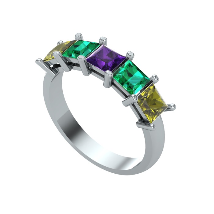 Ametist, yeşil kuvars ve peridot 14 ayar beyaz altın yüzük
