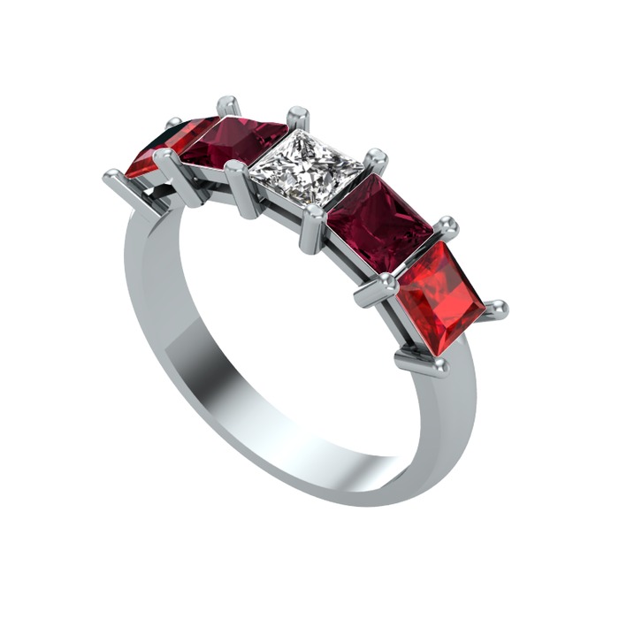 Beyaz zirkon, kök yakut ve garnet 18 ayar beyaz altın yüzük
