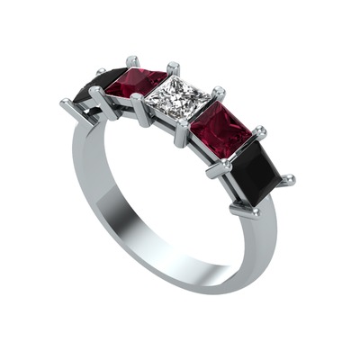 Beyaz zirkon, kök yakut ve siyah zirkon 8 ayar beyaz altın yüzük