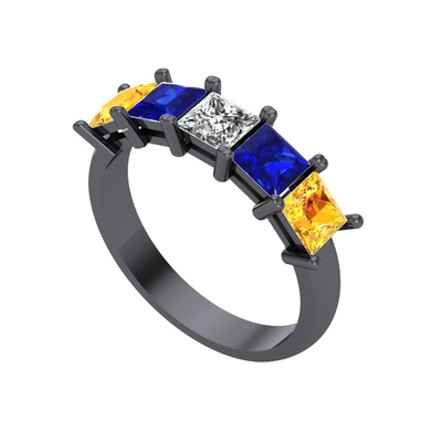 Beyaz zirkon, lab safir ve sitrin 925 ayar siyah rodyum kaplama gümüş yüzük