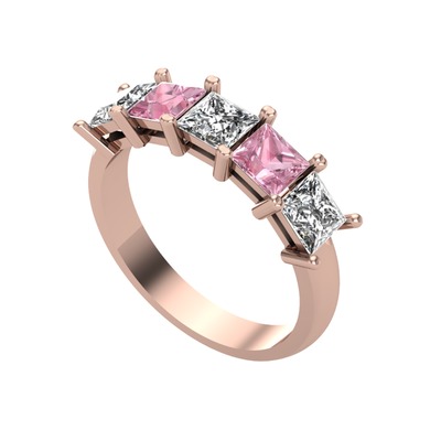 Beyaz zirkon ve pembe kuvars 18 ayar rose altın yüzük