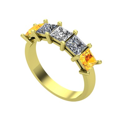 Beyaz zirkon, pırlanta ve sitrin 14 ayar altın yüzük (0.78 karat)