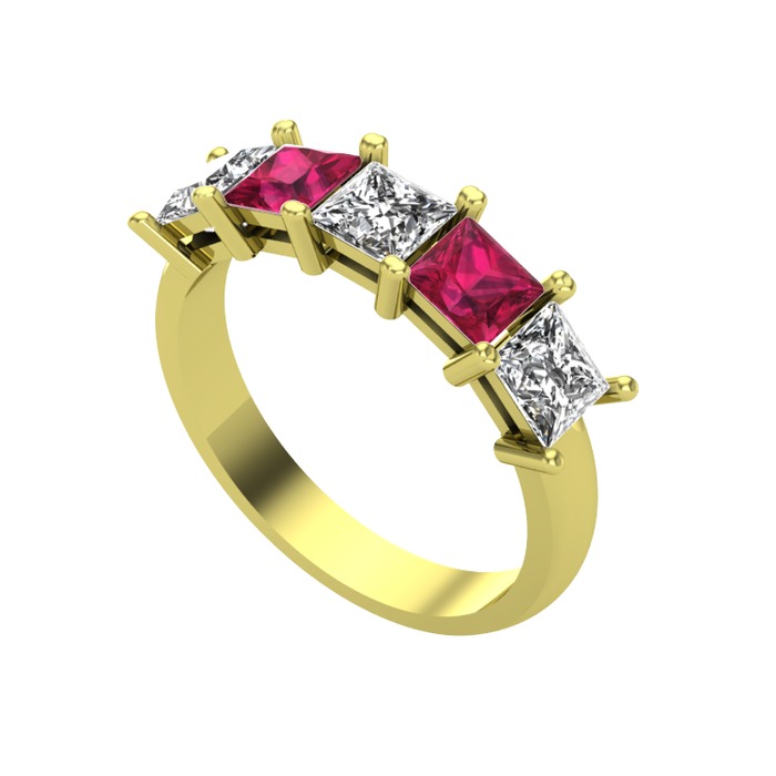 Beyaz zirkon ve rodolit garnet 18 ayar altın yüzük