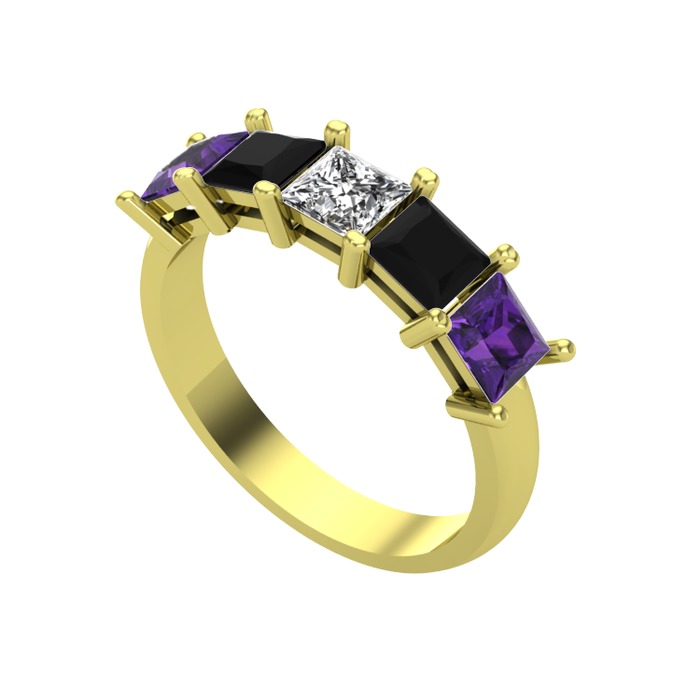 Beyaz zirkon, siyah zirkon ve ametist 18 ayar altın yüzük