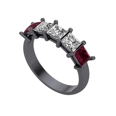 Beyaz zirkon, swarovski ve kök yakut 925 ayar siyah rodyum kaplama gümüş yüzük