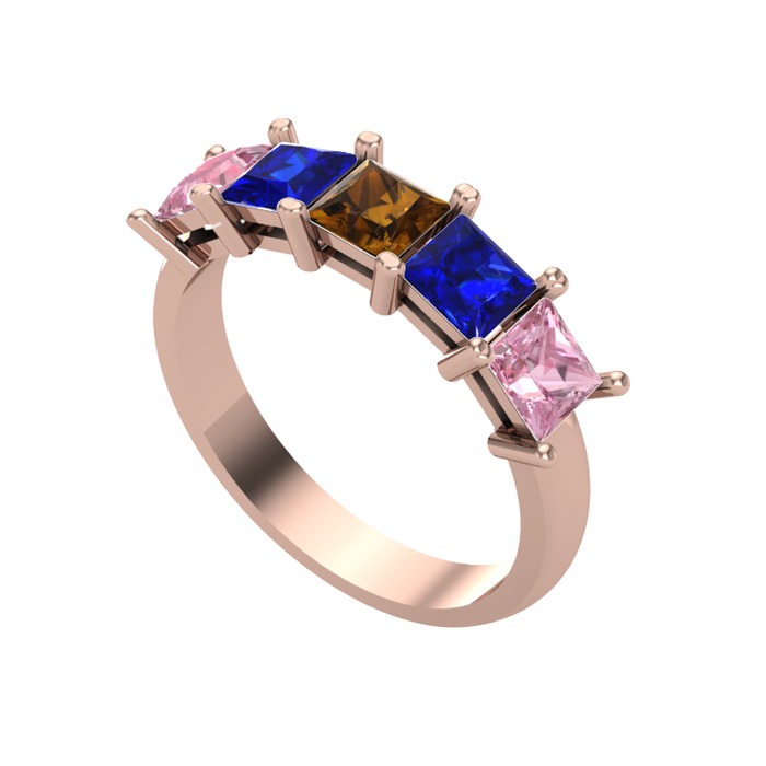 Dumanlı kuvars, lab safir ve pembe kuvars 14 ayar rose altın yüzük