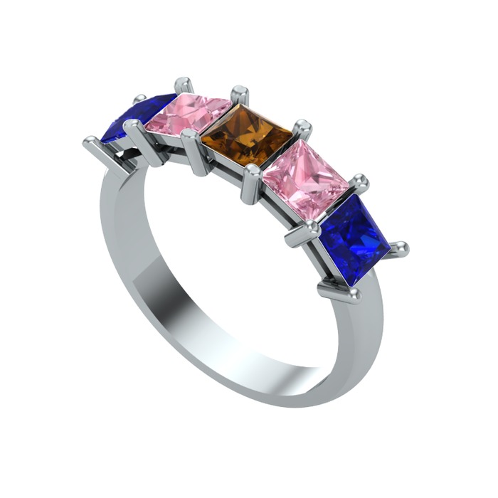 Dumanlı kuvars, pembe kuvars ve lab safir 14 ayar beyaz altın yüzük