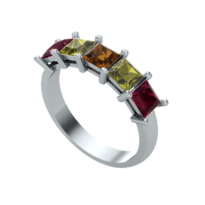 Dumanlı kuvars, peridot ve kök yakut 14 ayar beyaz altın yüzük