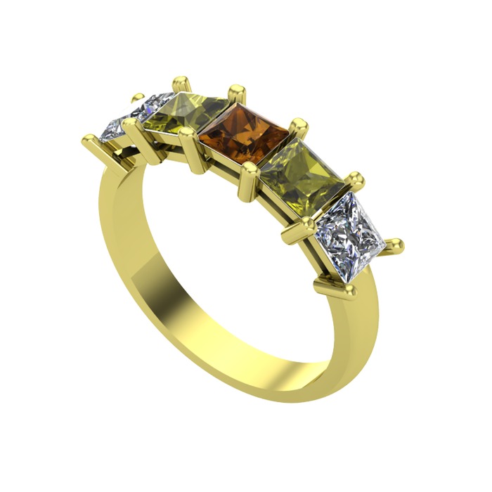 Dumanlı kuvars, peridot ve pırlanta 8 ayar altın yüzük (0.78 karat)