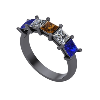 Dumanlı kuvars, pırlanta ve lab safir 925 ayar siyah rodyum kaplama gümüş yüzük (0.78 karat)