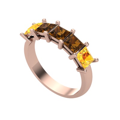 Dumanlı kuvars ve sitrin 925 ayar rose altın kaplama gümüş yüzük