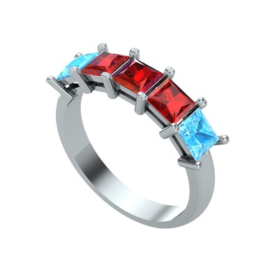 Garnet ve akuamarin 18 ayar beyaz altın yüzük