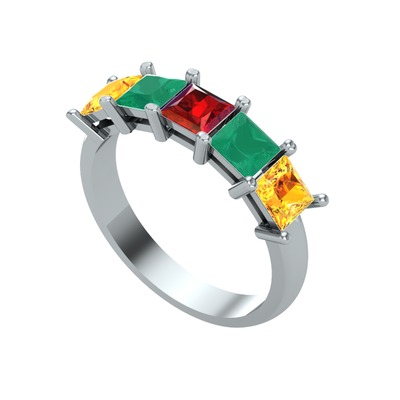 Garnet, kök zümrüt ve sitrin 18 ayar beyaz altın yüzük