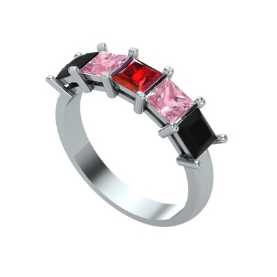 Garnet, pembe kuvars ve siyah zirkon 8 ayar beyaz altın yüzük