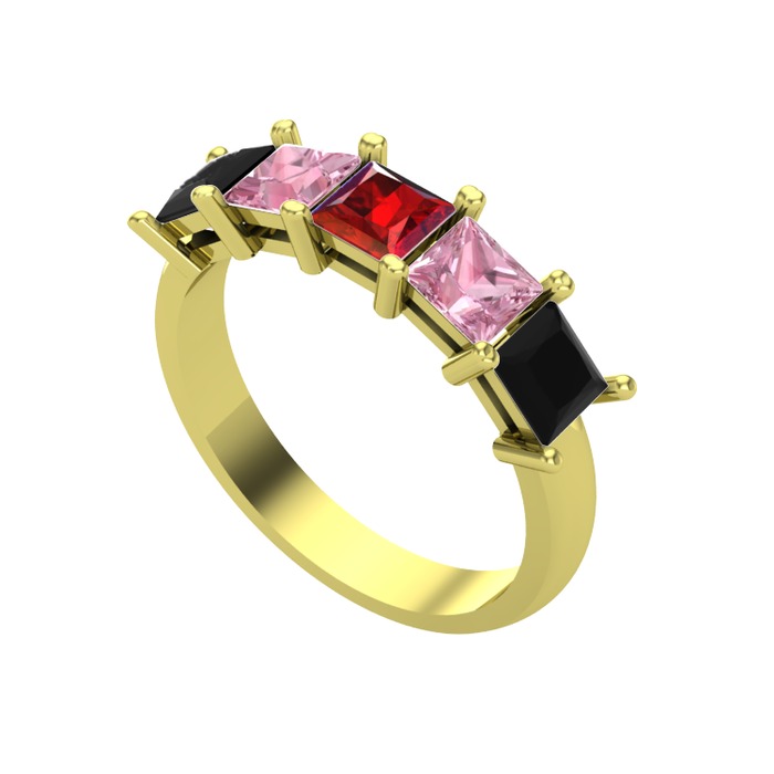 Garnet, pembe kuvars ve siyah zirkon 925 ayar altın kaplama gümüş yüzük