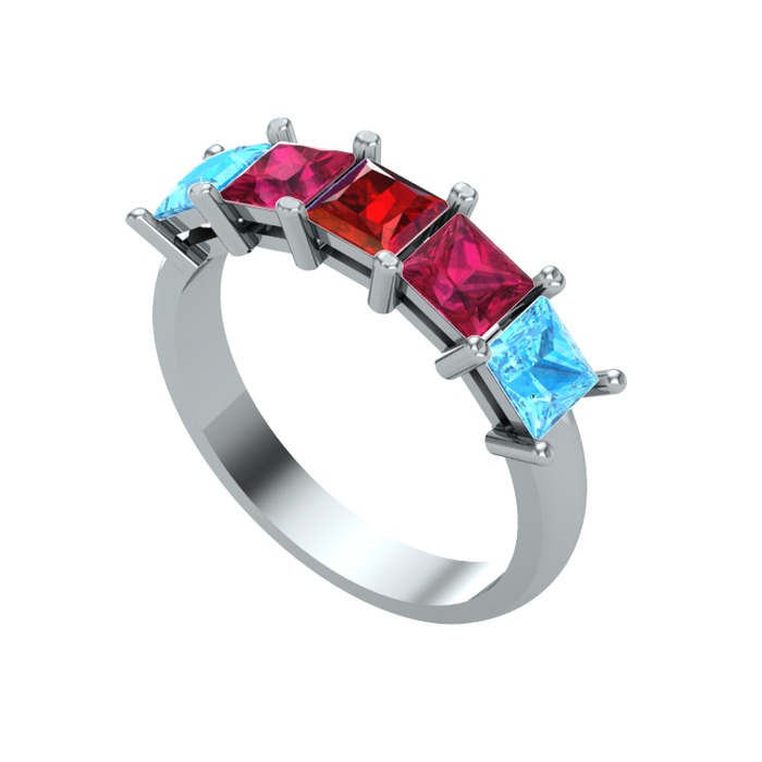 Garnet, rodolit garnet ve akuamarin 8 ayar beyaz altın yüzük