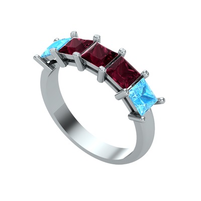 Kök yakut ve akuamarin 18 ayar beyaz altın yüzük