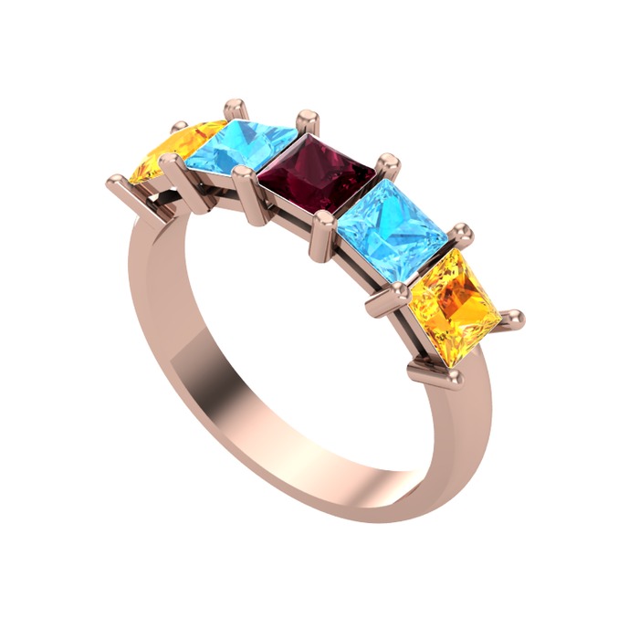 Kök yakut, akuamarin ve sitrin 925 ayar rose altın kaplama gümüş yüzük