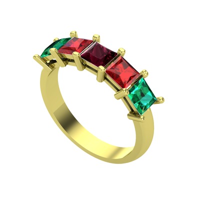 Kök yakut, garnet ve yeşil kuvars 18 ayar altın yüzük