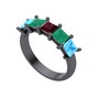 Kök yakut, kök zümrüt ve akuamarin 925 ayar siyah rodyum kaplama gümüş yüzük