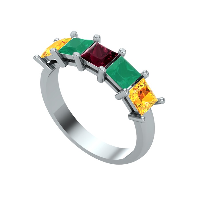 Kök yakut, kök zümrüt ve sitrin 14 ayar beyaz altın yüzük