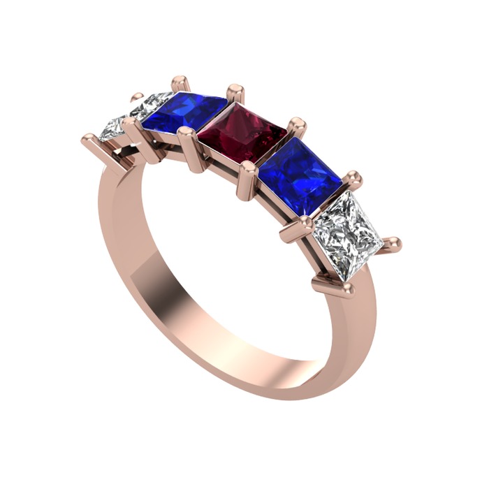 Kök yakut, lab safir ve beyaz zirkon 925 ayar rose altın kaplama gümüş yüzük