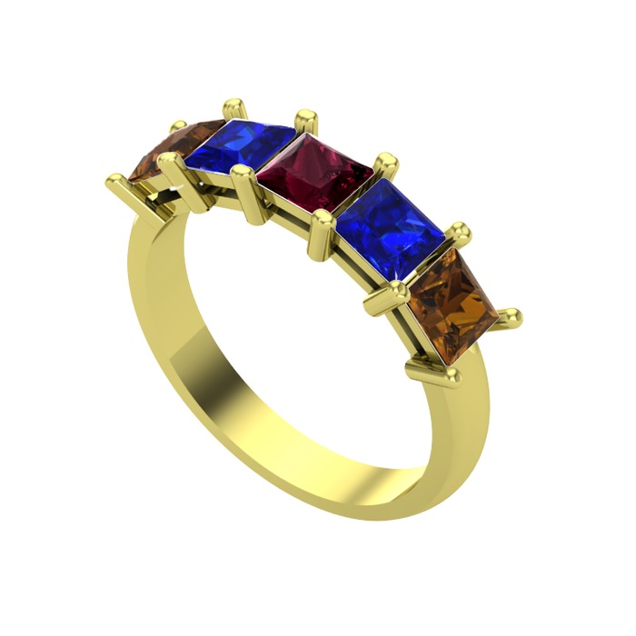 Kök yakut, lab safir ve dumanlı kuvars 8 ayar altın yüzük