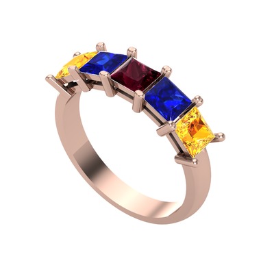 Kök yakut, lab safir ve sitrin 925 ayar rose altın kaplama gümüş yüzük