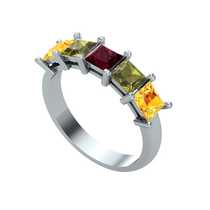 Kök yakut, peridot ve sitrin 925 ayar gümüş yüzük