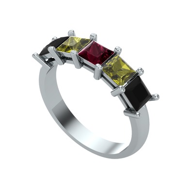 Kök yakut, peridot ve siyah zirkon 14 ayar beyaz altın yüzük