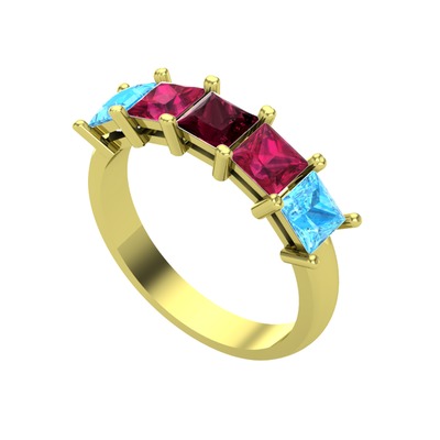 Kök yakut, rodolit garnet ve akuamarin 18 ayar altın yüzük