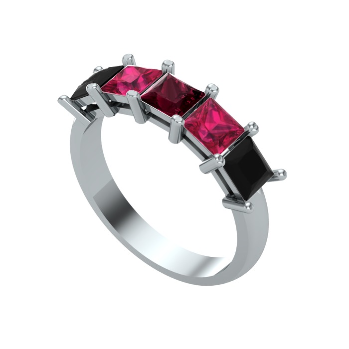 Kök yakut, rodolit garnet ve siyah zirkon 925 ayar gümüş yüzük