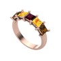 Kök yakut, sitrin ve dumanlı kuvars 14 ayar rose altın yüzük