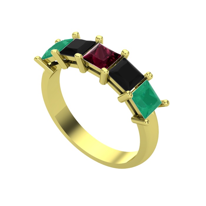 Kök yakut, siyah zirkon ve kök zümrüt 18 ayar altın yüzük